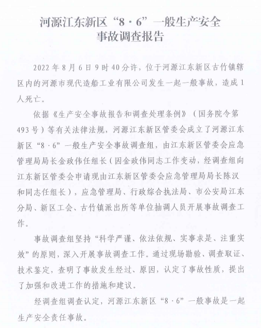 河源江東新區(qū)“8·6”一般生產安全事故報告