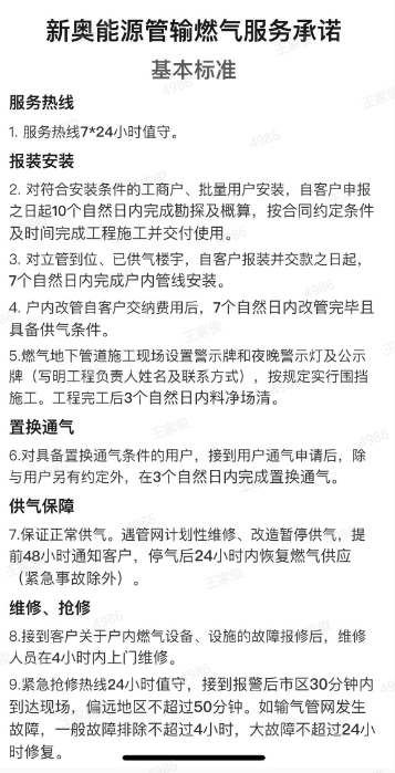 新奧燃氣公司服務(wù)承諾、河源華潤燃氣公司服務(wù)承諾